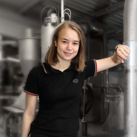 Nach ihrer Lehre zur Chemieverfahrenstechnikerin begann sie ihren Job in unserem Unternehmen und bedient seitdem die größte Maschine in unserer Produktionshalle 1.000 kg Pulverlack werden hier pro Stunde hergestellt und abgefüllt. Zu Sabrinas Aufgaben gehören die Überwachung dieses Prozesses, die Temperaturkontrolle sowie die Entnahme von Proben. Unsere Powerfrau sorgt außerdem dafür, dass die leistungsstarke Anlage laufend mit Rohstoffen versorgt wird und ist für die Wartung und Rüstung zwischen den Prozessen zuständig.