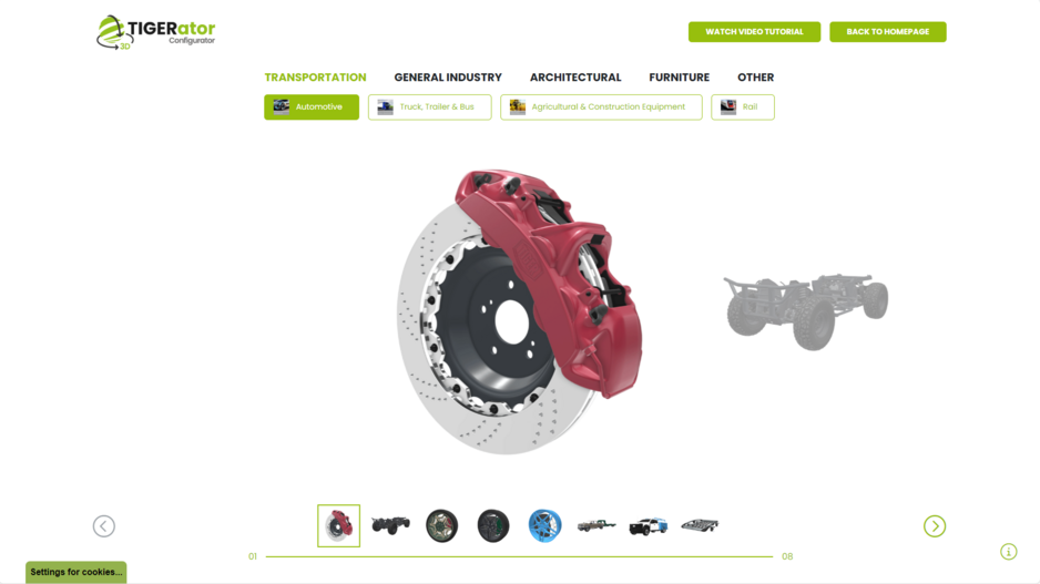 - Entscheiden Sie sich für ein Modell, das Sie virtuell mit TIGER Drylac® Pulverlack beschichten möchten.