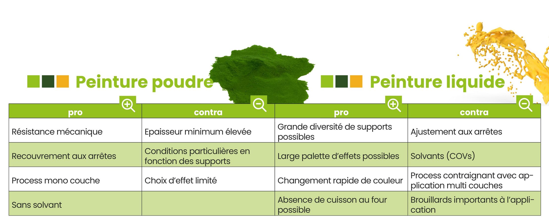 Une feuille de métal vierge n'a rien d'attrayant et n'est pas non plus correctement protégée contre les agressions extérieures telles que la corrosion ou les rayures. Le revêtement par peinture en poudre est un procédé qui protège les surfaces tant sur le plan mécanique qu’esthétique, en appliquant de la poudre et en la faisant fondre puis durcir. Des nombreux objets de la vie quotidienne, tels que les fenêtres, les portes, les meubles et les façades, sont aujourd'hui recouverts d'un revêtement en poudre. En outre, les revêtements en poudre peuvent également être utilisés pour des produits tels que des machines industrielles ou certaines pièces automobiles. Des nouvelles innovations permettent également d'appliquer ces revêtements en poudre sur des surfaces non métalliques, telles que le plastique, le bois ou le verre.