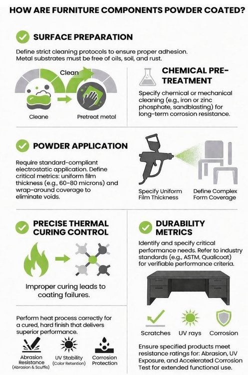 When specifying powder coating for furniture, several technical factors must be considered to ensure optimal performance: